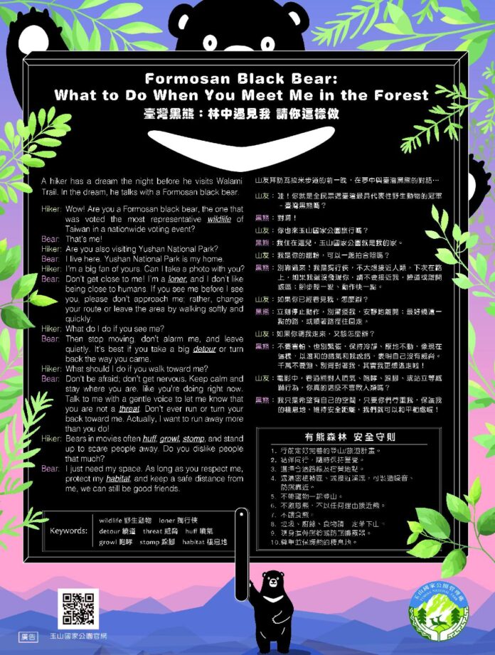 觀光旅遊臺灣黑熊:林中遇見我 請你這樣做Formosan Black Bear: What to Do When You Meet Me... 觀光旅遊 臺灣黑熊:林中遇見我 請你這樣做Formosan Black Bear: What to Do When You Meet Me in the Forest 編輯 李 沛君 2021-06-30 有熊森林 安全守則 停看聽,臺灣黑熊與山友的夢中對話~ Tags玉山國家公園 延伸閱讀 商情 移民留學文件不能出錯!專業翻譯社解析為何文件翻譯與公證認證影響成敗關鍵 商情 正道藏心茶葉蛋–南投必吃茶葉蛋、埔里藏心蛋宅配、無蛋黃茶葉蛋 商情 頂好防水防熱工程材料行–宜蘭防水抓漏、宜蘭屋頂防水、外牆防水 商情 啟思工業–台中南區電動吊車專賣、台中天車工程、台中拖板車首選