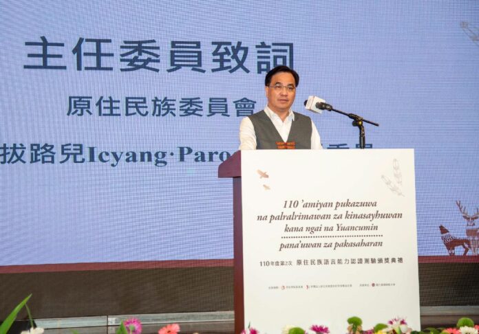 原住民族委員會為嘉勉「110年度原住民族語言能力認證測驗」成績優異者,於今(7)日下午2時假國立臺灣師範大學禮堂辦理頒獎典禮,原民會夷將‧拔路兒Icyang‧Parod主任委員親自主持,並頒贈獎狀及獎金予每一位成績優異者,嘉勉每一位受獎者未來都能夠成為族語推動先鋒,肩負起族語傳承的責任。