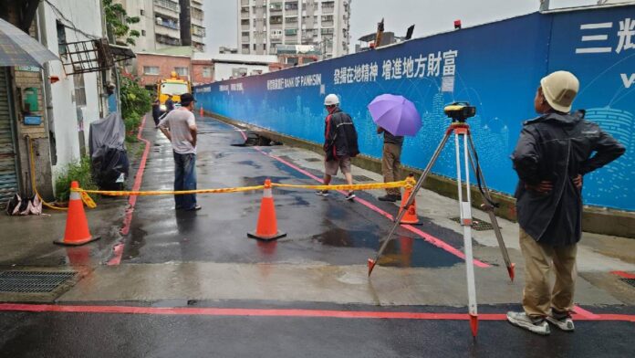 建管處說明該坍陷處為基地外,原有建築物拆除後,因屬列管未開闢完成之計劃道路,放樣勘驗前已打通並鋪設AC路面暫供通行,目前建案工程進度為基礎開挖至地下室17.3公尺,基地內連續壁並無滲水、變形破損之情形,因基地有退縮建築線開挖,坍陷處距離開挖面仍有2~3米距離,基地內外相關監測數據今天塌陷事件發生後已經重新檢測,數據與前次監測數值無明顯差異,現場水利處、新工處、自來水處亦配合勘查並無公共設施管線破壞,現場經大地技師初步研判無安全疑慮,亦無需疏散民眾。