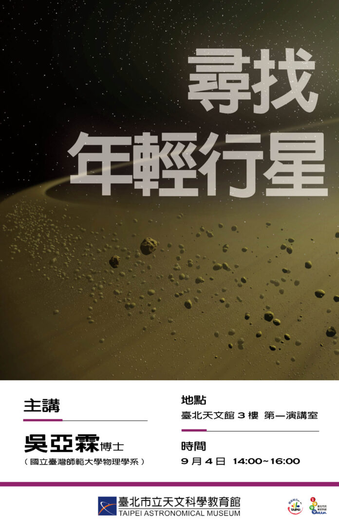 天文學家認為太陽系的行星在四十多億年前誕生,也已經在其他恆星上發現五千多顆系外行星!但是,這些行星怎麼誕生,它們的成長過程如何演變?臺北天文館將於9月4日(日)14時,於第一演講室邀請國立臺灣師範大學物理學系吳亞霖助理教授,主講「尋找年輕行星」,與您一起探討尋找行星的搖籃。