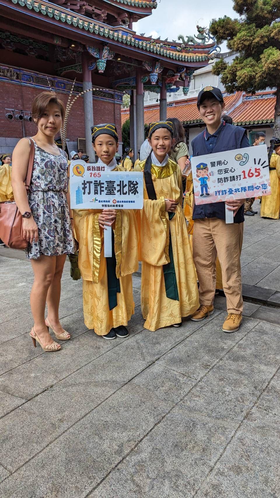 警察局預防犯罪宣導團,於112年 9月28日前往臺北市政府社會局辦理112年臺北市各界紀念大成至聖先師孔子誕辰2573週年釋奠典禮會場,舉行識詐宣導;典禮由市長蔣萬安,並有大龍國小的學生表演六佾舞。