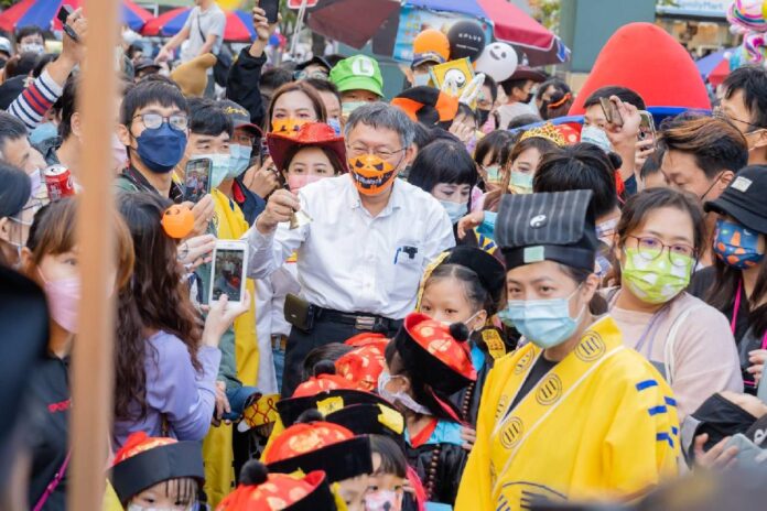 為形塑商圈特色,由臺北市商業處輔導台北市天母商圈發展協會舉辦之第14屆「天母搞什麼鬼萬聖節嘉年華」活動,在今(29)日邁向最高峰,柯市長也蒞臨現場與民眾同樂一起搞怪,活動更串連250間店家高掛南瓜燈籠,提供百萬顆曼陀珠、乖乖軟糖讓小朋友免費要糖搗蛋,更有最受歡迎的日本「超人力霸王」、「機界戰隊全開者」、「佩佩豬與弟弟喬治」見面會,讓大小朋友一同帶著限量版「南瓜桶」,享受充滿異國氛圍的天母萬聖假期!