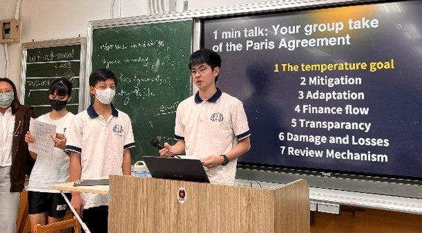 本次以線上方進行,並以全英文進行,學生透過英文來理解氣候變遷的概念、各國應對氣候變遷的政策與極端氣候的危害等影響,並運用英文及專有名詞來辯論,確實有挑戰。教務主任許孝誠說,所幸,國際課程學生在許多教學中都接觸到聯合國永續目標的相關概念,學生在教師的引導下,很快便能從不同的面向熟悉政策背景、成因、指標。