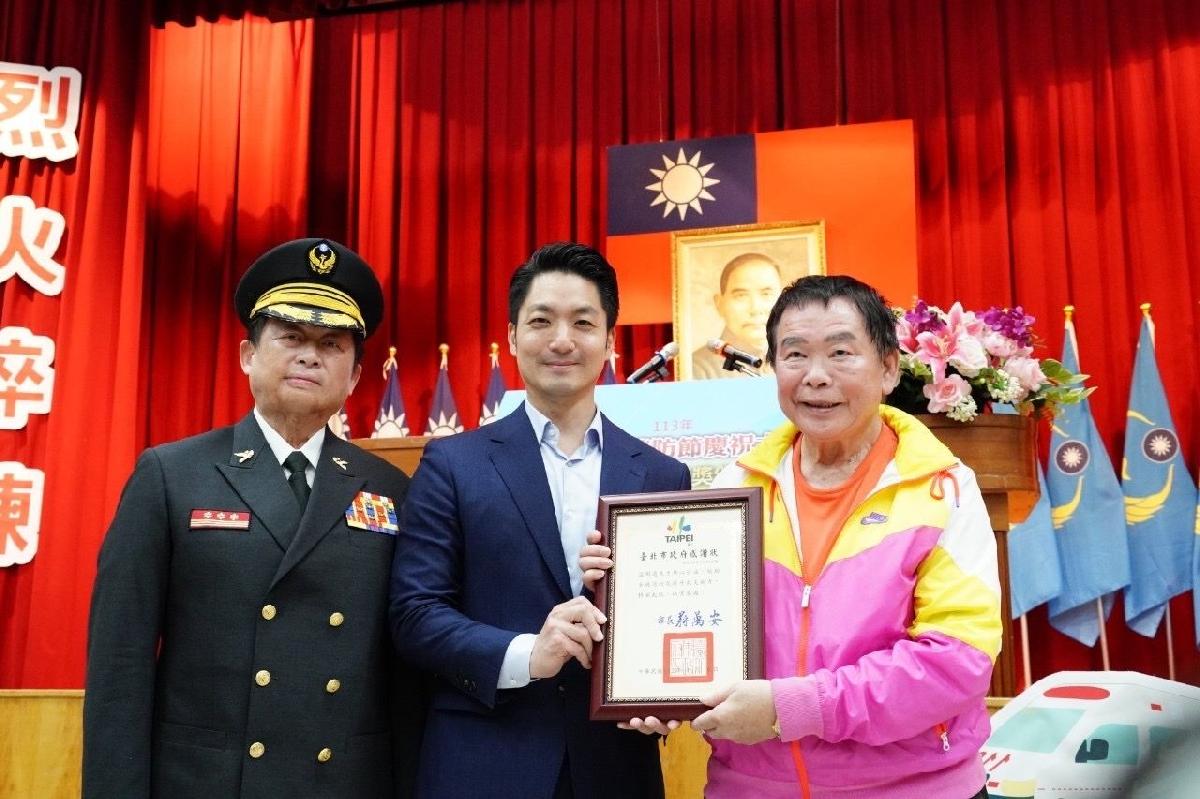 臺北市長蔣萬安在119消防節當天,前往臺北市消防局參加「113年119消防節慶祝大會暨金龍獎頒獎典禮」,親自表揚消防同仁及義消的努力與付出。蔣萬安致詞時,首先向所有消防義消同仁表達最高的感謝及敬意,他說,一直以來消防同仁總是在第一線、第一時間提供各項救助,守護市民朋友的安全,所以他要特別在119消防日這天對大家說聲感謝。