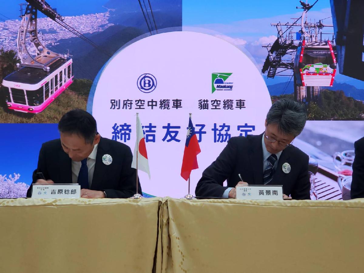 為迎接更多國際遊客,貓空纜車與日本九州最大纜車系統「別府空中纜車」22日締結為友好纜車,在臺北捷運公司總經理黃清信、近鐵投資控股公司董事飯田保之見證下,與別府空中纜車社長吉原稔郎簽訂友好協定締結書,並交換雙方纜索,象徵彼此宛如鋼鐵般的友誼,未來將攜手促進彼此觀光、文化及商業發展。