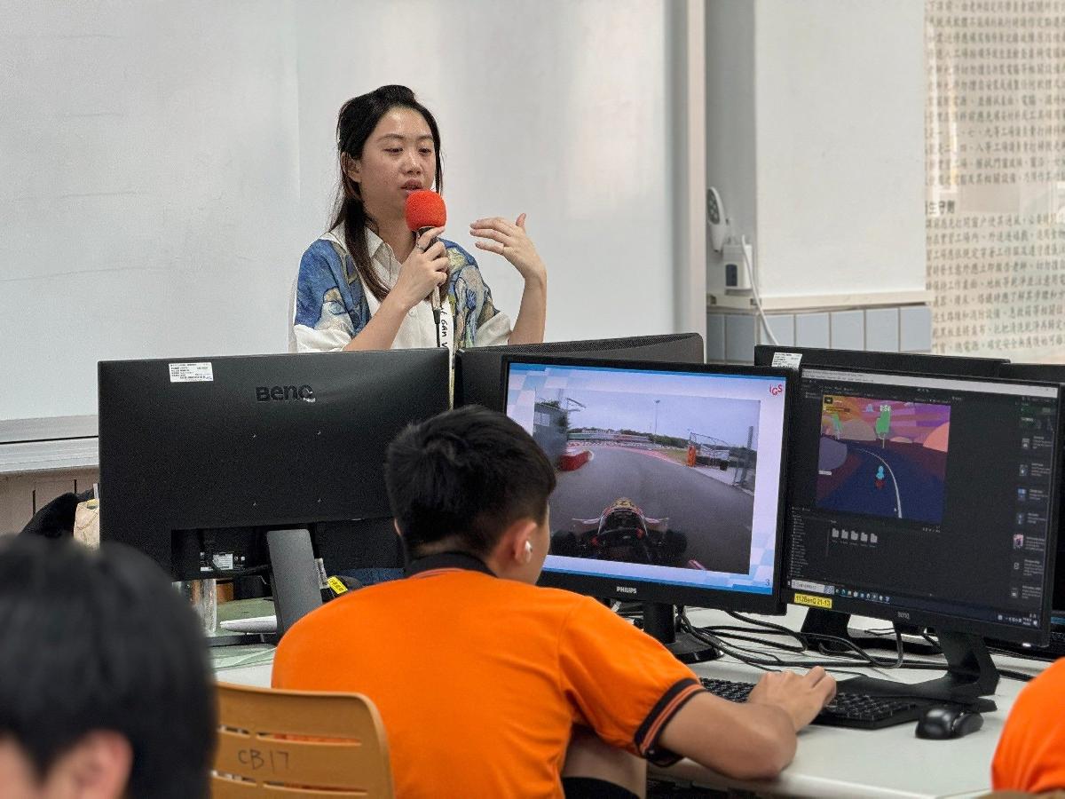 鈊象電子商用遊戲機事業處總經理陳阿見表示,今天在大安高工資訊科進行的業師協同教學,是設計成18小時的「遊戲開發」微課程,先對學生介紹遊戲製作概論及遊戲開發技術,後續課程內容還包括遊戲企劃創意發想、遊戲設計軟體、遊戲細節規格及音效等,讓學生從中學習如何建構賽車3D模型和遊戲賽道模型,進而讓學生編輯賽道,將所學應用在成果展示中,完成自己獨一無二的賽車遊戲。