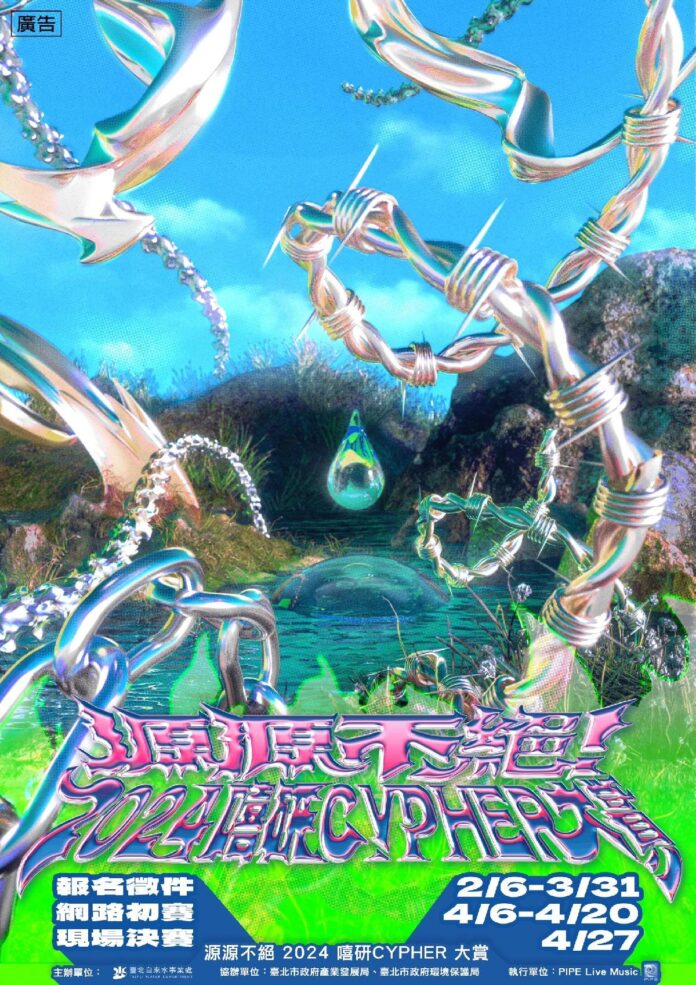 「我在黑綠色的海洋看見碎了心的龜殼,連金黃色的太陽都把大地染成黑色,貪婪的索取不尊重大自然的規則…這世界給我源源不絕的愛我們卻不懂珍惜,等大地發出了痛苦的哀才在思考是否可以」(取自臺大嘻研社/一世紀的眼淚)。46組來自全國北中南東各高中大學嘻哈研究社的原創詞曲音樂作品,歷經15天在YouTube頻道網路初賽,總觀看次數突破15萬,爭取站上4月27日「源源不絕! 2024嘻研CYPHER大賞」決賽舞台。這場號召年輕人一起關懷地球,為地球而唱的全國首屆校際嘻研社CYPHER競賽,吸引200多位學生參與,前20強已於4月20日23點59分出爐。主辦單位臺北自來水事業處表示,這不僅是一次競賽,更是鼓勵年輕人創作的引擎,開啟另一種關懷地球的方式。