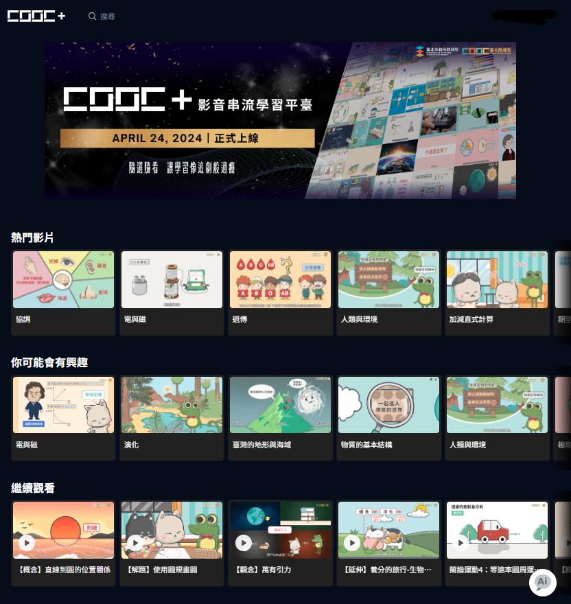 【主題:臺北酷課雲AI智慧功能再升級!推出全新CooC+影音串流學習平臺,讓學習像追劇般暢快!】