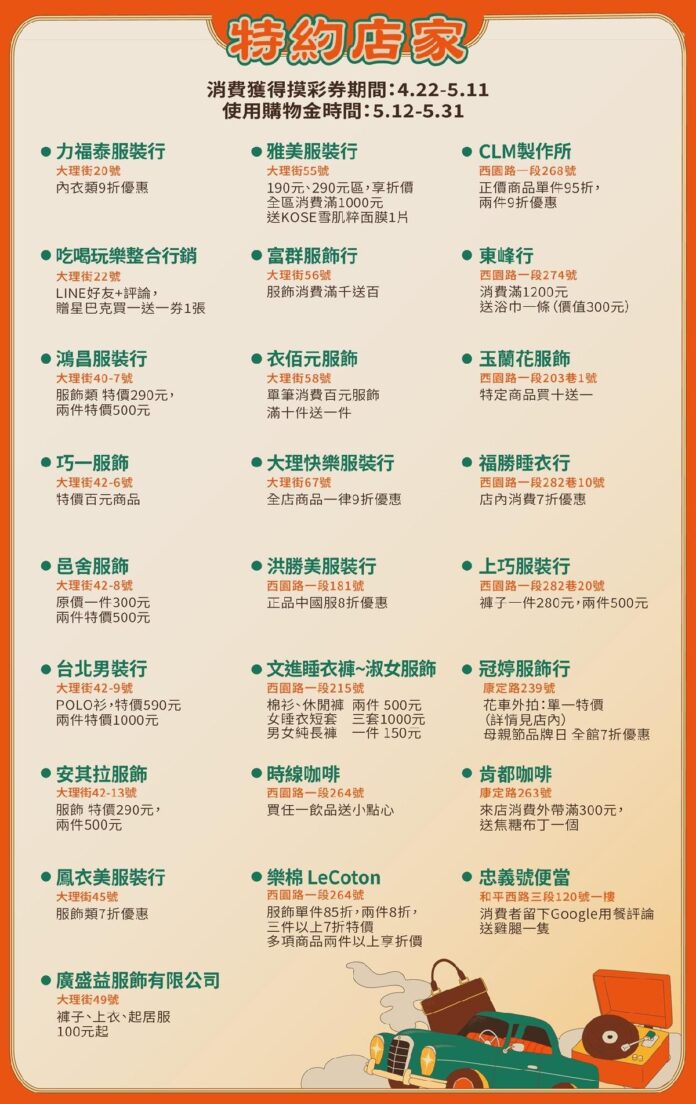另外喜愛深度體驗艋舺服飾商圈魅力的朋友們千萬別錯過,即日起至113年5月19日前手刀報名商圈走讀活動及穿搭講座,即可與老師們一同探索全臺第一個服飾批發商圈的歷史故事,並同時了解「古著」的發展脈絡,並尋找自己的風格,搭配出潮流亮眼的造型,因為各場次活動名額有限,額滿即截止,報名要快!喜歡自己走走逛逛的民眾也可以於即日起至113年5月31日,至特約店家出示艋舺復古著衣派對活動網頁,消費即享店家優惠,活動詳情歡迎至「2024【艋舺復古著衣派對】」活動網站及「台北市艋舺服飾商圈」粉絲專頁 查詢。