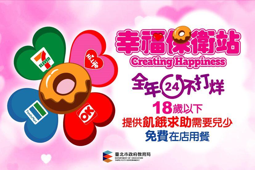 為了要讓更多人知道臺北市幸福保衛站政策,讓更多孩子獲得妥善的照顧,臺北市政府教育局除了請各級學校全年持續透過學校的跑馬燈、穿堂電視、網頁宣導幸福保衛站訊息外,也讓臺北市民眾可以在台北通APP看到幸福保衛站活動訊息,並請12個行政區區公所協助提供幸福保衛站文宣給每一位里長協助向里民宣導,讓臺北市各街頭巷尾的市民都知道四大超商門市可以提供每位18歲以下陷困兒少每餐約100元的便當、麵食或麵包等主食餐點和非酒精類飲料在店內食用,共同保衛全市兒少的幸福,讓有需要的孩子餐餐都能溫飽、健康茁壯。