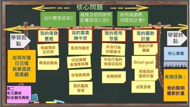 龍門國中戴鈴容、邱于玲、詹俊誠教師的「『記』往開來,日理萬『金』」課程,以主題式教學模式,擇定理財重要議題融入課程,學生利用前、後測記帳整理,轉化為表格或圖形來檢視自己的消費模式,並思索修正調整的消費抉擇,以達成擴及課程知識、運用課程技能,落實到日常生活中,充分展現帶的走的素養導向能力,榮獲國中組優選。