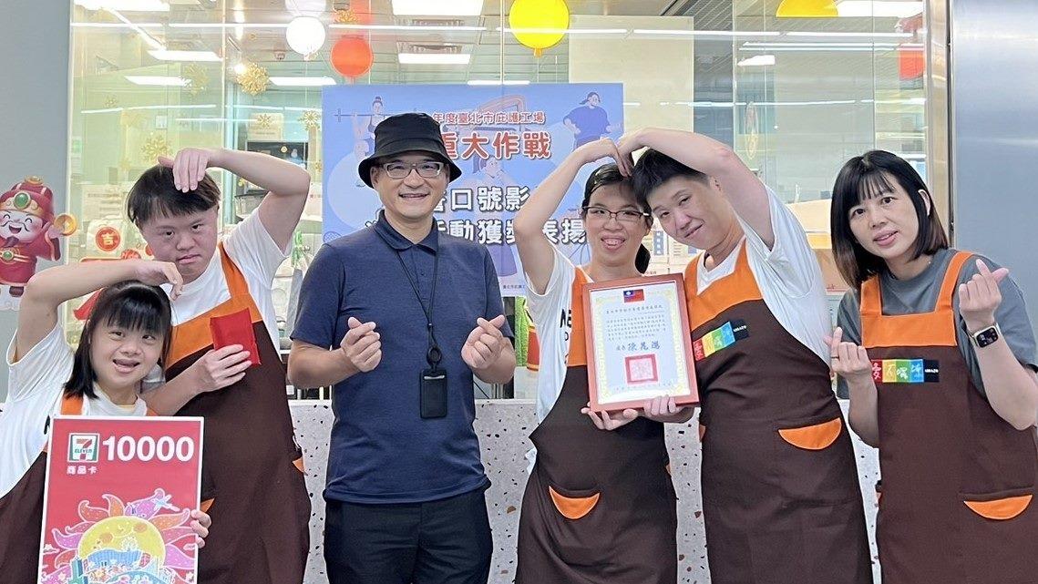 其中,捷運南港展覽館庇護工場「減肥宣誓影片」以16,678高票脫穎而出,榮獲第1名殊榮;伊果文創印刷庇護工場「巫明謙-師徒聯手減重組」於比賽期間與第1名僵持不下,呈現拉鋸戰,最後以14,322票榮得第2名;陽光社會福利基金會「陽光減重大作戰」急起直追以10,048票獲得第3名。臺北市勞動力重建運用處處長陳昆鴻特地於113年8月19、20日親臨現場頒獎,感謝身心障礙工作者積極參與活動,表揚其口號構思及影片拍攝之用心。