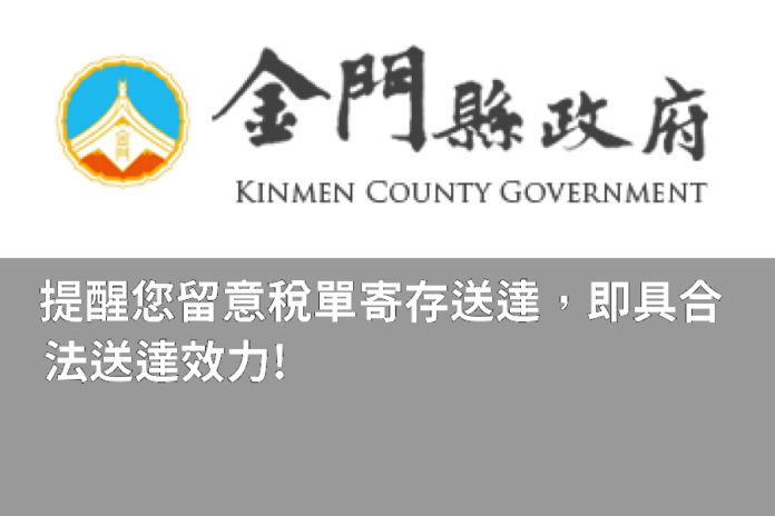 金門縣稅務局表示,稅單經郵務人員完成寄存送達,即具合法送達效力,除了不能以沒有收到為理由而拒繳外,若未依規定在期限內繳納,還會另外加收滯納金,並且移送強制執行。