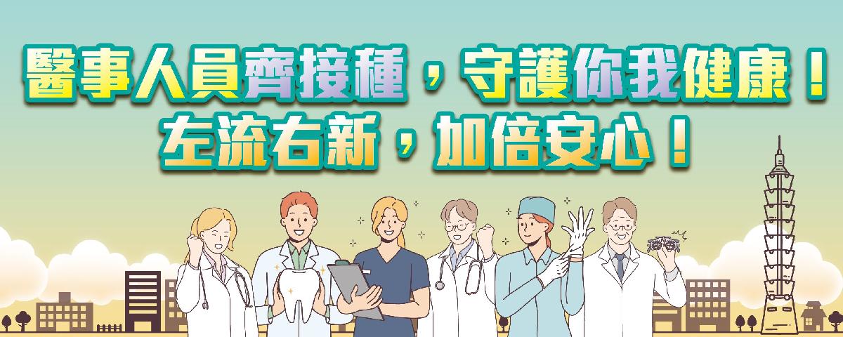 「左流右新,加倍安心!」今年流感與新冠JN.1疫苗同步自10月1日起分階段接種,醫事人員為第一階段接種對象,臺北市蔣萬安市長及衛生局黃建華局長9月20日攜手臺北市21大醫事公會,共同呼籲北市6.5萬名醫事人員接種流感及新冠疫苗,降低執業過程受感染的風險,保護自己也保護他人。