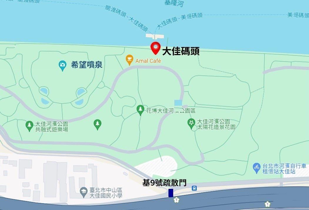 4.地點:臺北市大佳碼頭 (從北市大佳國小往大佳河濱公園方向直行,進入基九號疏散門後,左轉往希望噴泉方向前行, 即可抵達)