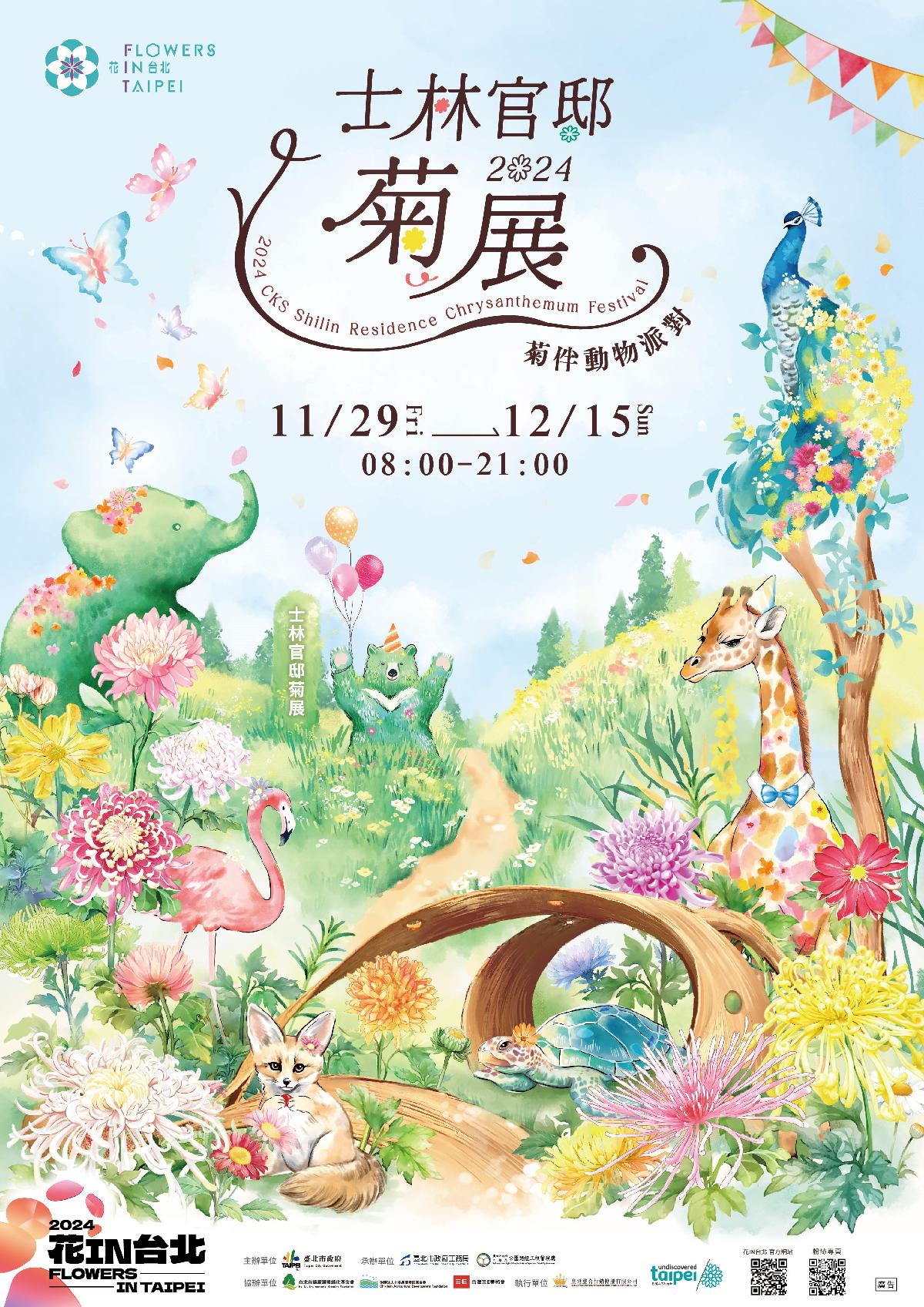 公園處處長藍舒凢表示,每年士林官邸菊展讓民眾體會到花綠無所不在且更有特色的士林官邸面貌,為來自世界各地的朋友準備一處賞花療育的場域,同時也是將公園處日常培育花卉的工作,以更具藝術氣息的方式呈現給大家,讓市民在這秋冬時節感受花朵兒的溫暖與美麗,獲得心靈上的充足。菊展做為「花IN台北」年度最後一場大型花展,匯聚了工作人員們的園藝技術、創意及努力,利用各式大、中、小菊並搭配菊科草花,搭配由公園處同仁們以近一年的時間培育的懸崖菊、造型菊、嫁接菊等打造豐富的花藝殿堂,今年「菊伴動物派對」,以全球不同氣候區的景致為藍圖,打造臺灣區、熱帶雨林區、海洋區、澳洲區等不同氣候區的動物棲息地,此外,亦利用廢棄木頭、舊布料、椰纖等回收媒材製作展區裝置物件,生動呈現各氣候區動物與花藝間的結合,更與「不廢跨村實驗室」合作讓花藝充滿無限可能,也看見菊展新的風貌。
