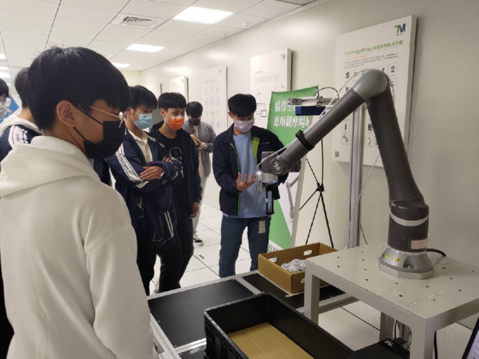 【臺北報導】臺北市立中正高中自108學年度發展人工智慧學程,至今已有第四屆學生,且與台北科技大學、淡江大學及西門子公司、達明機械手臂公司進行課程合作,不論是師資、設備、大數據資訊等皆協作發展。日前(12月9日)AI課程專班高二學生和師長一行23人,前往廣達集團旗下達明機器人公司桃園廠,親身經驗臺灣協作機器人的製程和應用,見證全球機器人密度台灣排名第8名的驕傲。