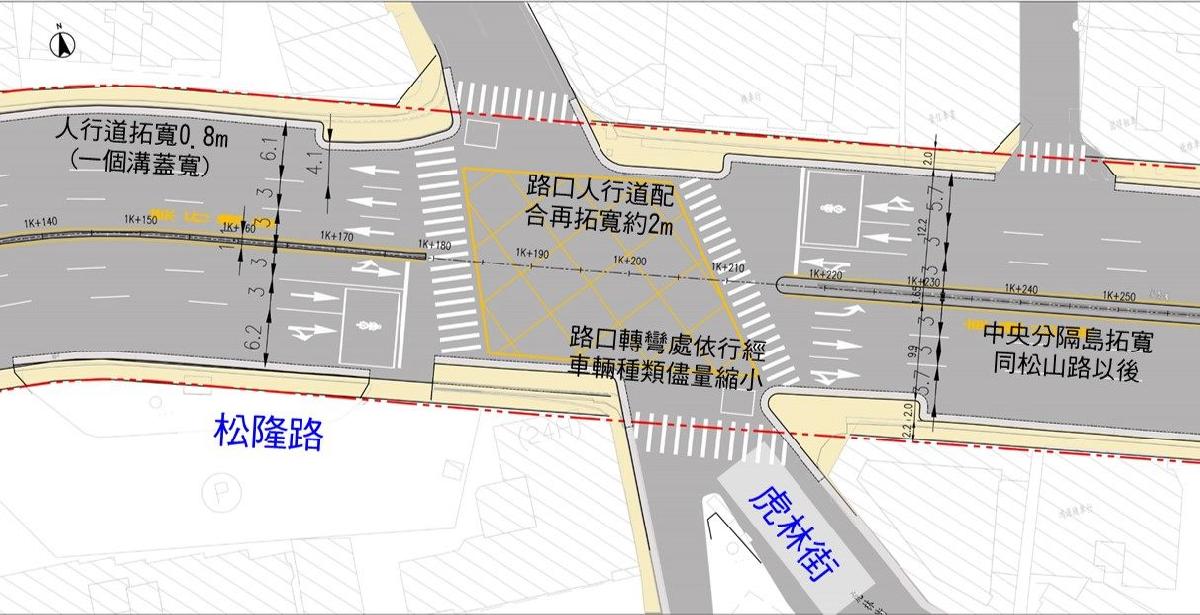 為改善行人通行環境,建設通行友善城市,臺北市政府工務局新建工程處將辦理松隆路(基隆路至松山路段)人行道拓寬工程,完工後可提升該路段人行道及其無障礙服務水準,達到以人為本的宜行都市目標又再往前一步。目前該工程已於113年9月26日決標,後續預計於113年12月開工,工期300日曆天。