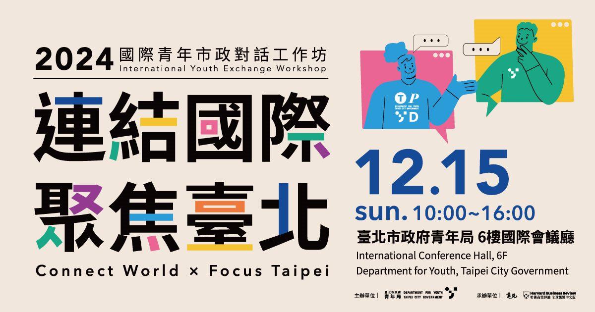 臺北市青年局自2024年6月成立以來,致力於協助青年參與公共事務、拓展職涯發展、與國際接軌,並積極陪伴青年實現自我價值。今年年底,青年局將舉辦年度重磅活動——「2024國際青年市政對話工作坊」(2024 International Youth Exchange Workshop),邀請來自不同背景與海外在臺青年及專家共同參與,打造一個暢談未來城市發展與國際發展的平台,讓世界聽見青年的聲音。
