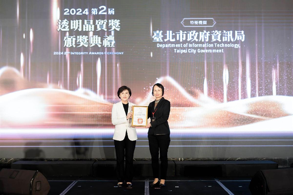 2024年12月9日,適逢「聯合國國際反貪腐日」,法務部與外交部聯合舉辦第2屆「透明晶質獎」頒獎典禮暨「2024臺灣透明論壇」。本次盛會吸引國際透明組織正、副主席等全球反貪腐領域的重要人物,見證臺灣在廉能治理與資訊透明化上的領導地位。臺北市政府資訊局以卓越表現脫穎而出,榮獲特優機關殊榮,並由行政院副院長親自頒獎,充分展現臺灣在國際間的透明治理實力。