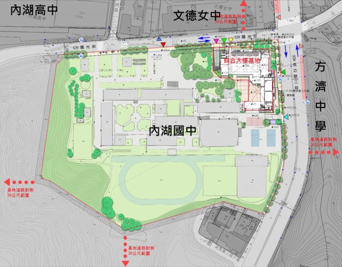 位於臺北市內湖區陽光街的內湖國民中學於民國57年籌設,為內湖地區第一所國民中學。因配合延長9年國民義務教育政策且早期校園規劃與現今教育環境需求大相徑庭,經評估後,原綜合大樓有改建之需求,臺北市政府隨即展開規劃綜合大樓新建工程作業,並於110年4月開工及113年10月完工,刻正進行驗收程序中。預計可於今(113)年底取得使用執照,屆時除了提供在校師生嶄新優質的學習環境及活動中心供社區課後使用外,新設的地下2層停車空間,也可紓緩周邊社區民眾的停車需求,達到學校社區共享、互利的目標。