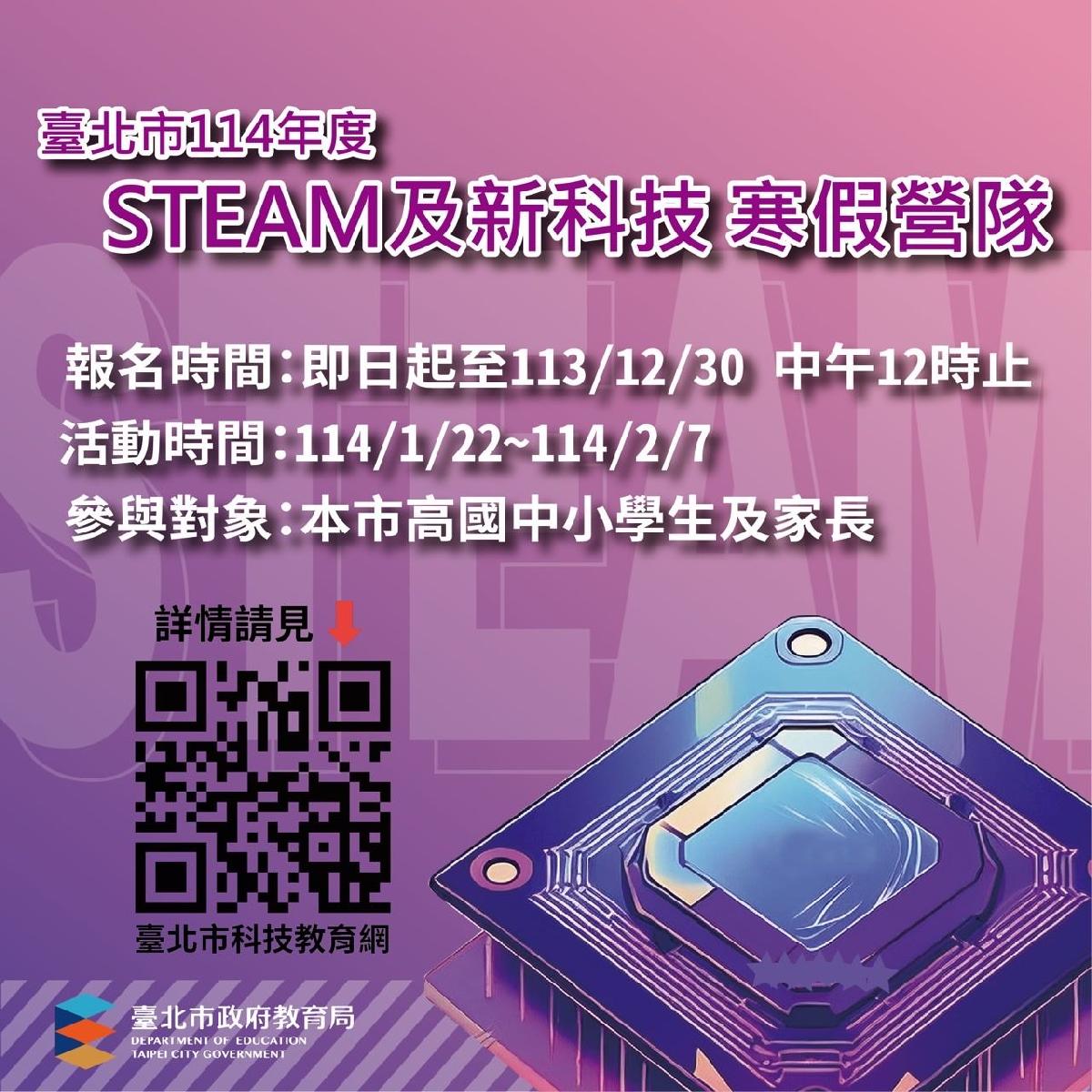【主題:北市114年寒假STEAM及新科技教育營隊推出60梯次共905名額,邀請親師生一同體驗STEAM跨域專題學習魅力】