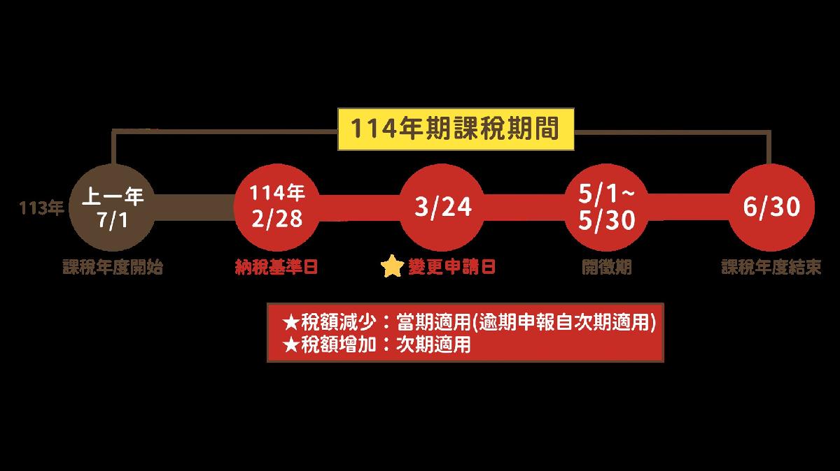 金門縣稅務局特別提醒民眾,自113年7月1日起,房屋使用情形變更,致稅額減少者,須於當期開徵40日(即3月22日,114年適逢假日遞延至3月24日)前向當地主管稽徵機關申報,可自當年期生效;逾期申報或致稅額增加者,則自次年期生效;經核定後如果使用情形未變更,免再申報。例如:房屋原為非自住使用(稅率2.6%),變更自住使用(稅率1.2%),如於當期開徵40日(3月22日,114年適逢假日順延至3月24日)以前申報,當期即可適用1.2%自住稅率課徵;如逾期申報,則當期仍按2.6%課徵。