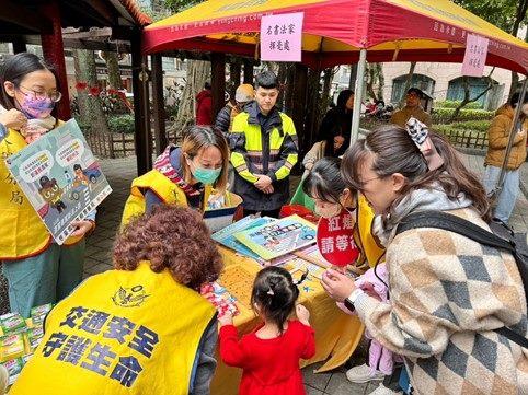 大安警特別在活動現場設置攤位,進行交通安全宣導,提醒民眾穿越馬路應行走行人穿越道,切勿為貪圖方便逕行穿越車道;另也針對高齡者加強宣導換照規定,凡年滿75歲的駕駛人須每3年換發駕照一次,須經體檢合格及通過認知功能測驗,或檢附未患中度以上失智症證明,才可駕車,保障用路安全。