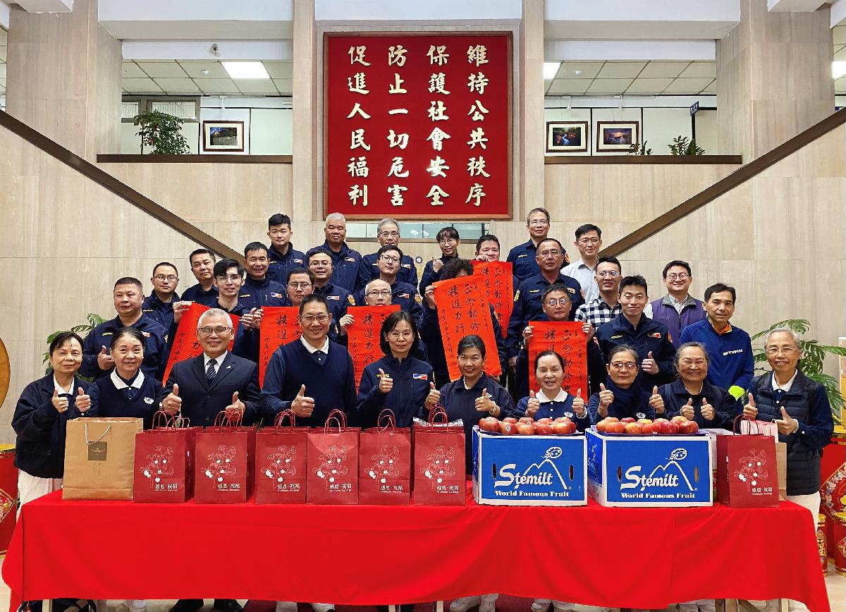 於今(114)年春節前夕,為表達對警察同仁支持,慈濟基金會松山聯絡處林雪英師姐攜同一行10人,專程前往臺北市政府警察局保安警察大隊,向辛勤工作警察同仁致贈蘋果等物資,並透過關懷活動祈福,祝福警察同仁在新的一年平安順遂,守護市民安康。