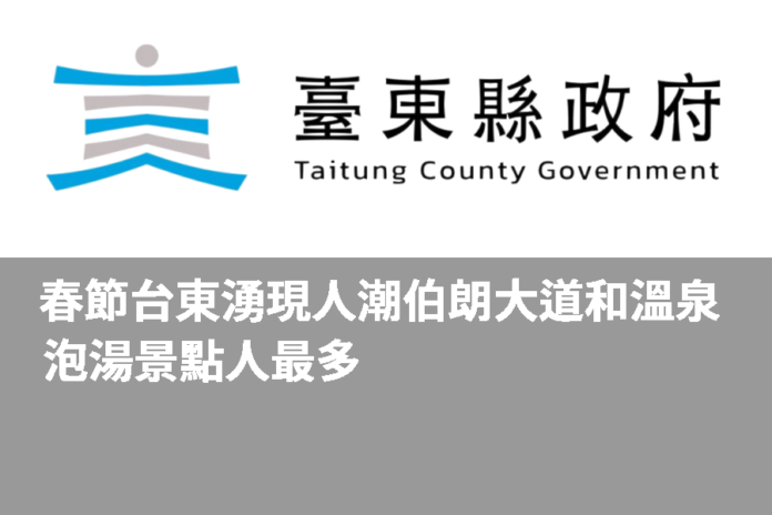 今年農曆春節9天連續假期台東市區及觀光景點人潮湧現,依據統計資料顯示,池上伯朗大道遊客逾3萬8800人次最多,知本溫泉、金崙溫泉等冬季泡湯景點,也湧入逾3萬6000人次,另市區鐵花新聚落每日皆逾1萬5000人次,為迎接即將到來的春季旅遊熱潮,縣府將持續優化觀光服務,並規劃系列大型活動吸引更多遊客到台東旅遊。