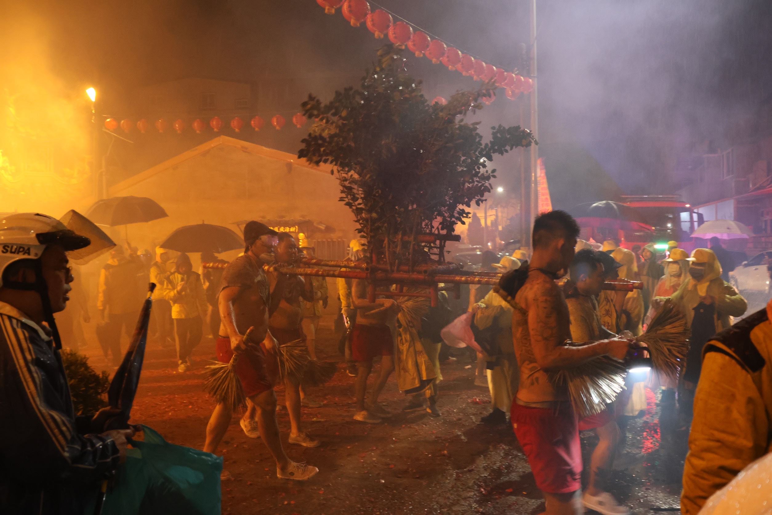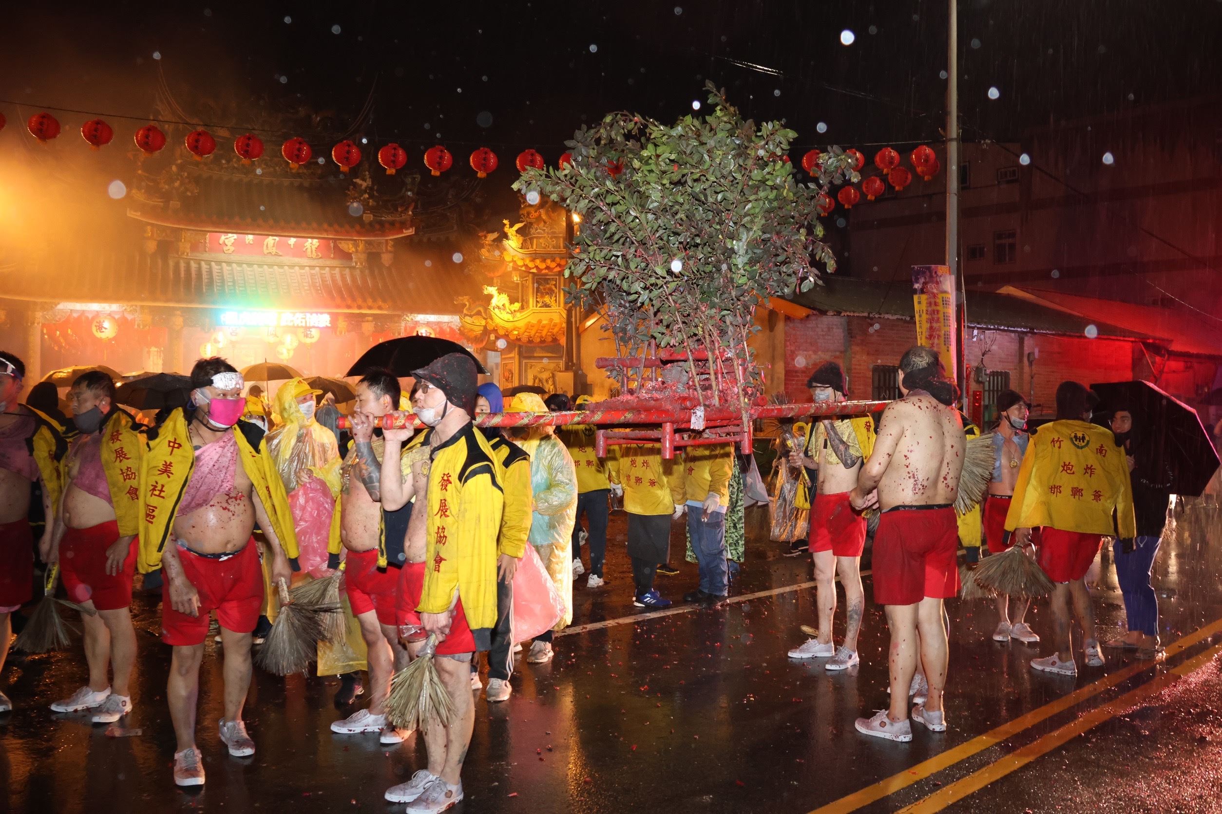 12日晚間的炸邯鄲活動,從中美社區活動中心出發經保安宮、守法街、迎薰路、三聖宮、中正路、復興路、社興宮、民生路、中港龍鳳宮、功明街 、文天宮至中港慈裕宮,沿途鞭炮聲不斷,民眾不畏風雨夾道圍觀,充滿慶元宵的熱鬧氣氛。