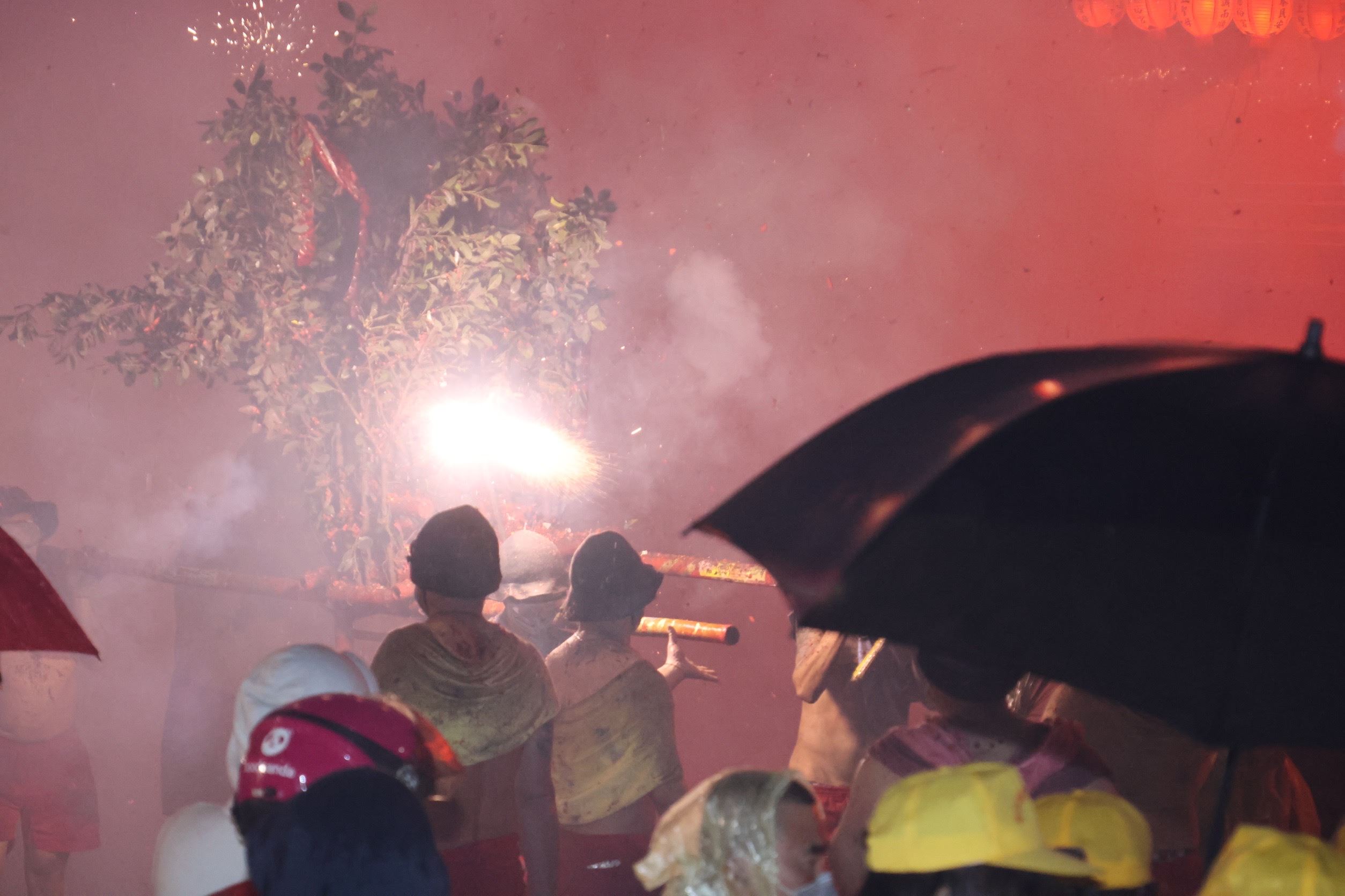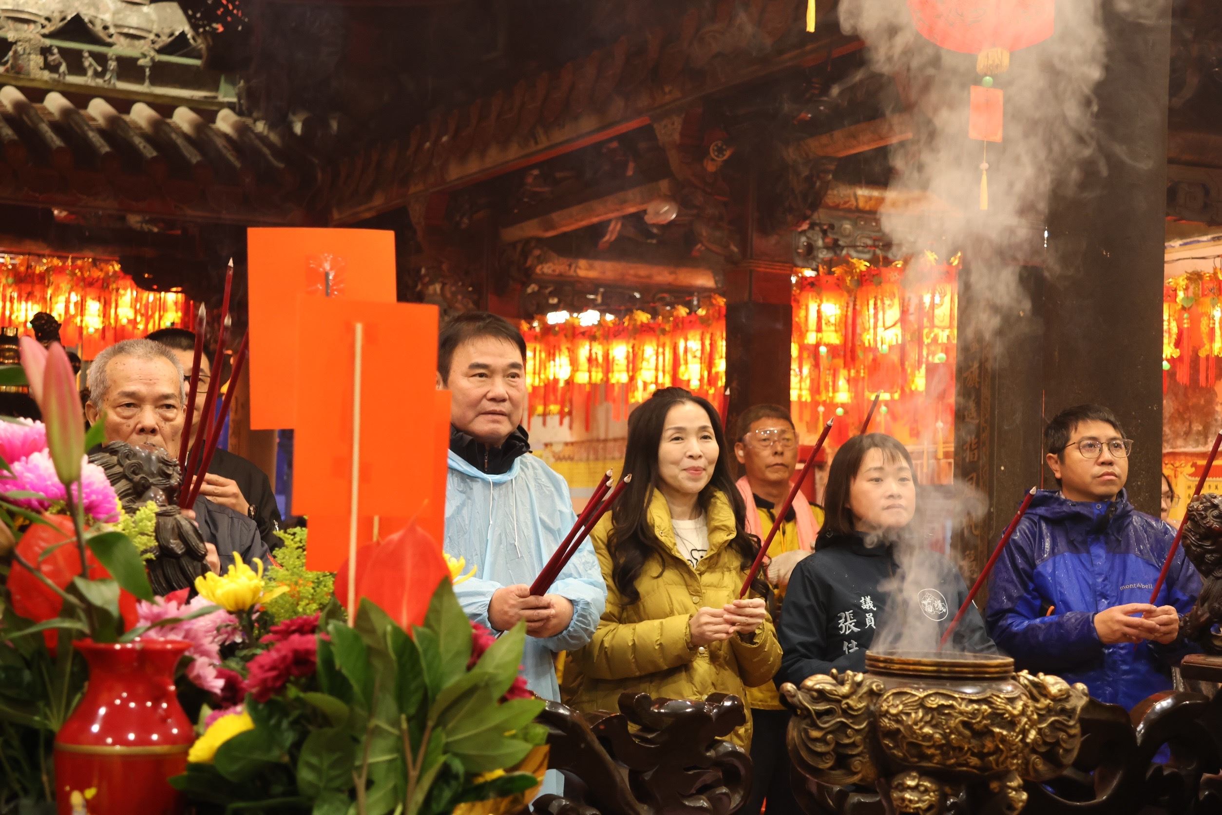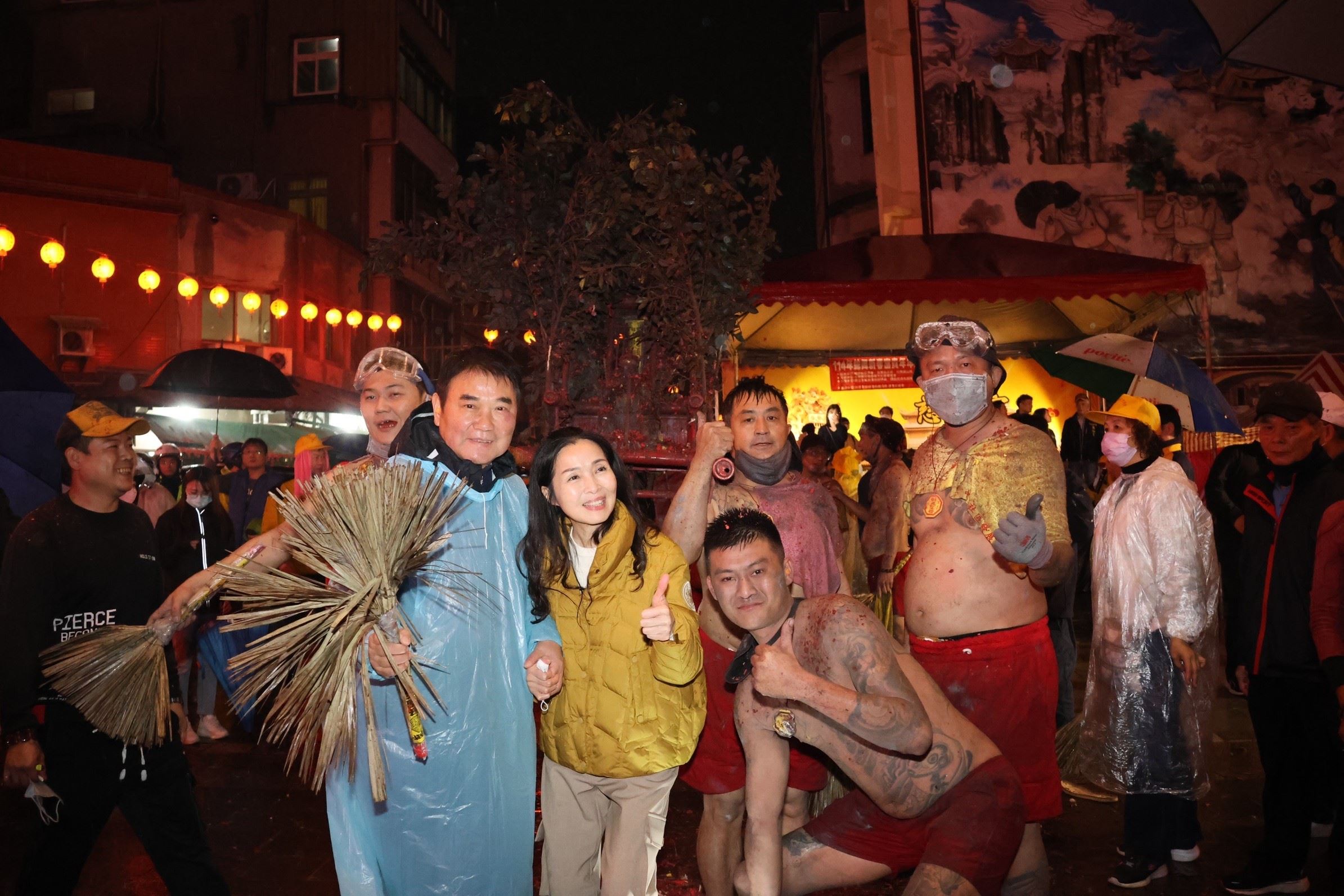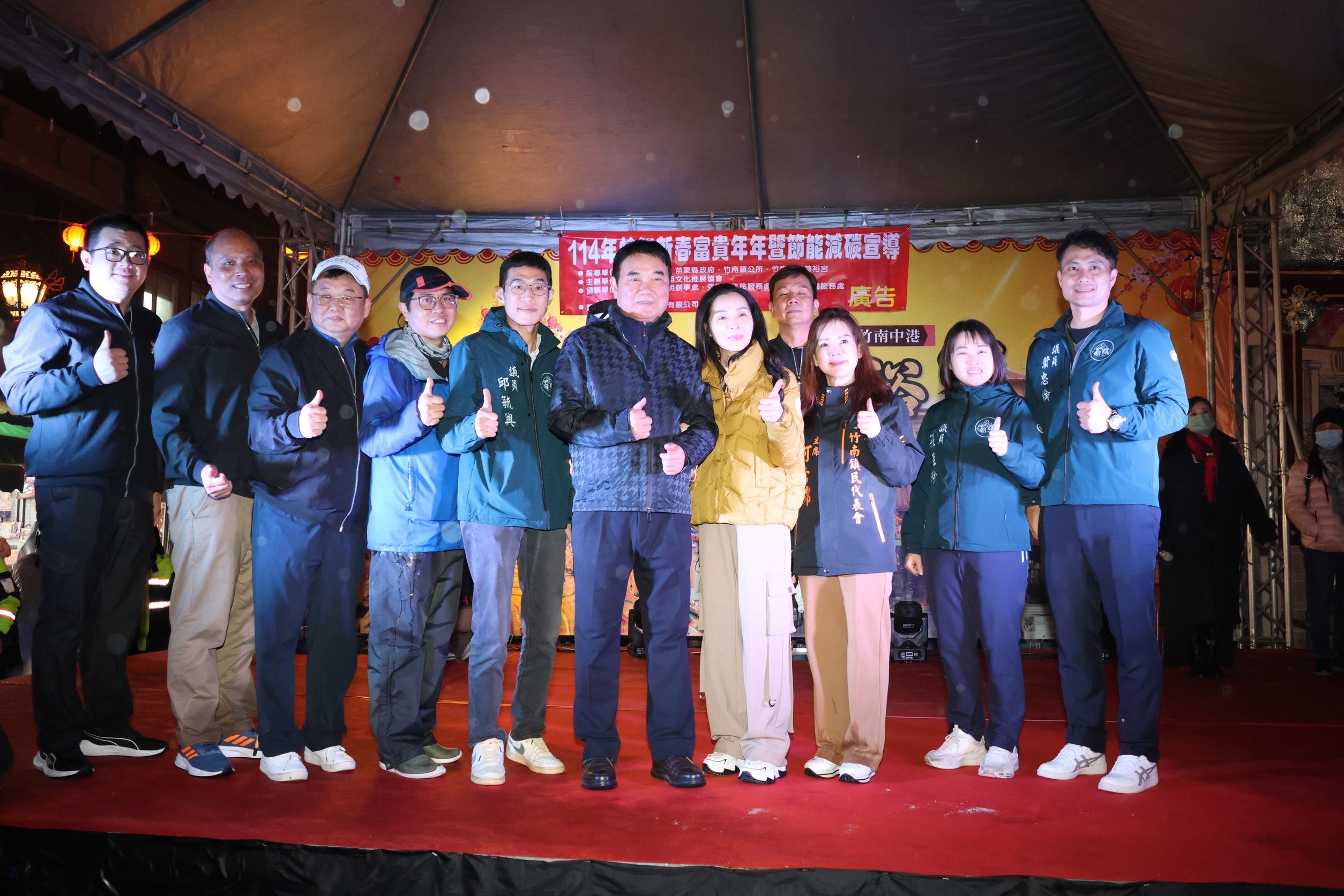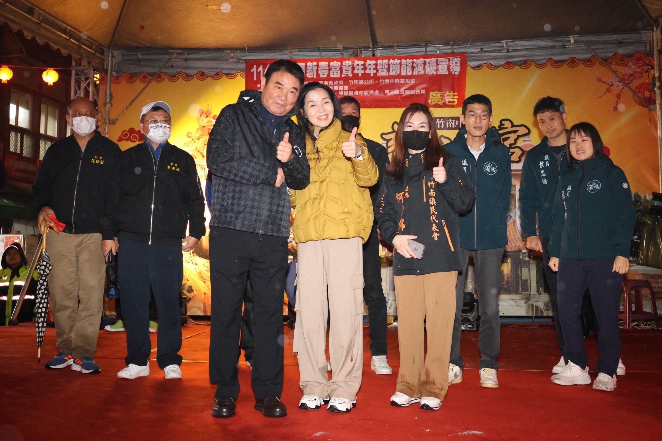 縣長鍾東錦、夫人陳美琦、議員張佳玲、葉忠倫、邱毓興、竹南代表會主席何秀綿等人,抵達慈裕宮先參拜祈福,隨後由縣長點燃炮火,展開一連串精彩的炸邯鄲,縣長伉儷全程參與並且不時拿起手機紀錄精彩畫面,與今年因遠在美國無法一同參加的女兒可可分享,感受家鄉濃厚的過節氣氛。