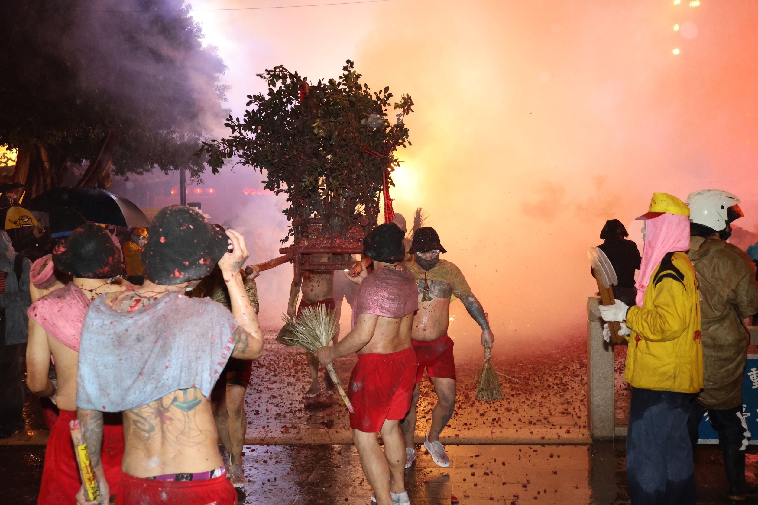 炸邯鄲又稱「造佛」,慈裕宮炮震北邯鄲造佛文化藝術節是具百年歷史的傳統民俗活動,相傳能驅疫避邪、迎接財運,全程由打著赤膊、僅穿紅短褲的勇士們,揮著天罡掃,在炮陣中抬著玄壇元帥神像,接受炮陣洗禮。