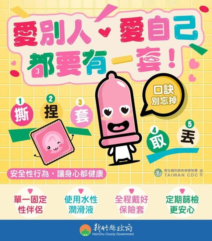 今天(2月14日)是西洋情人節,新竹縣政府衛生局提醒,健康是最好的情人節禮物,歡度浪漫的同時要做好個人保護,愛別人、愛自己,請全程正確使用保險套!衛生局表示,全程正確使用保險套可有效預防與控制愛滋病、性傳染病(如梅毒、淋病)及M痘等疾病,讓愛更安心、更健康。