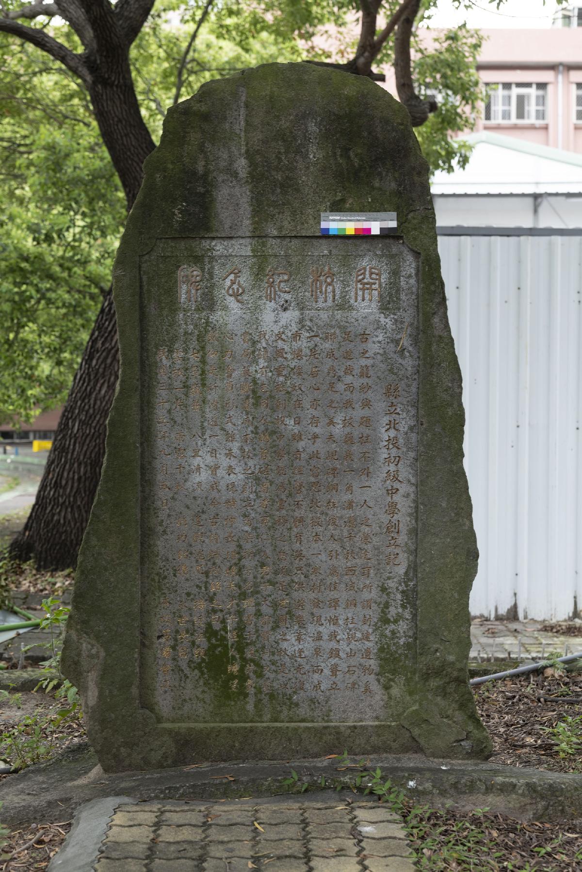 本次通過學校文物,係屬文獻館自2018年以來推動「臺北市立公立學校文物普查計畫」之普查成果。設立於北投國中校內「縣立北投初級中學開校紀念碑」,銘刻於1946年9月,見證北投區自日治時期的「臺北州北投國民學校」,改為戰後時期「臺北縣立北投初級中學」,此改制升級為初級中學,而非平行改設較特殊,反映臺灣基礎國民教育之歷史變遷。為了促使改制並提供地方中等學校教育設施,由地方仕紳出資,在臺灣教育史為較特殊案例。透過紀念碑背面刻寫「樂捐芳名」,亦能瞭解戰後之初地方菁英對培育本地子弟的熱情,並且從捐贈者名錄可看出與地方社會的連動及地方經濟實況。