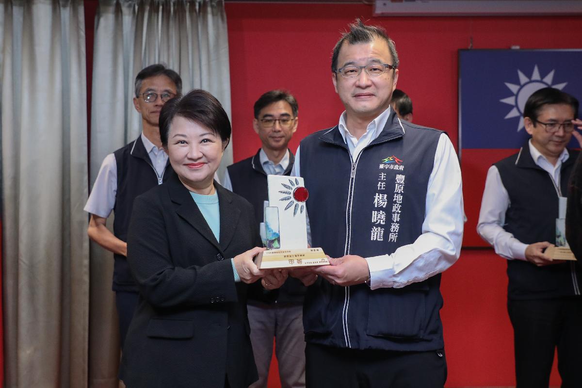 台中市政府自106年推動簡政創新實施計畫以來,地政局及所屬地政事務所年年獲獎,成績斐然。113年度簡政創新績效評核,中興所「房屋面積檢核自動化,人民財產保障毋須怕」及豐原所「預售屋市場保健組」2項創新提案表現亮眼,中興地政事務所主任林建伸與豐原地政事務所主任楊曉龍日前於市政會議上獲市長盧秀燕頒發甲等獎表揚,強調將持續以科技創新,提升服務效能。