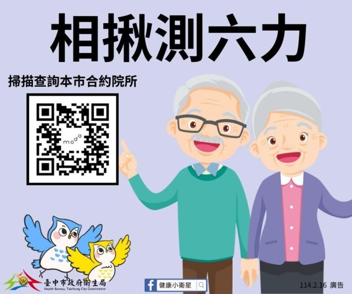 衛生局補充,有關台中市執行預防及延緩失能的長者功能評估合作醫療(事)機構,民眾可以透過衛生局網站(https://gov.tw/81p)進行查詢,更多健康訊息,歡迎追蹤台中市政府衛生局官方臉書專頁「台中市衛生局-健康小衛星」 (https://www.facebook.com/HealthTaichung/)獲取最新資訊喔!(2/16*11)*衛生局