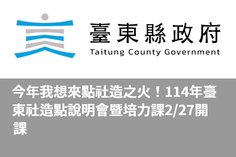今年我想來點社造之火! 114年臺東社造點說明會暨培力課2/27開課