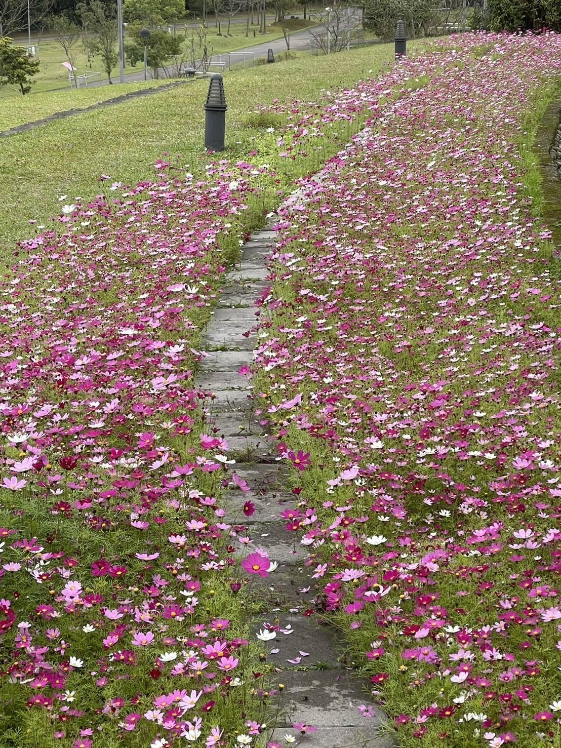 轉眼又到百花齊放的初春時節,臺北市環保局南港山水綠生態公園現在波斯菊盛開,花比人嬌媚,歡迎民眾闔家一同來踏青賞花,培養美麗好心情。