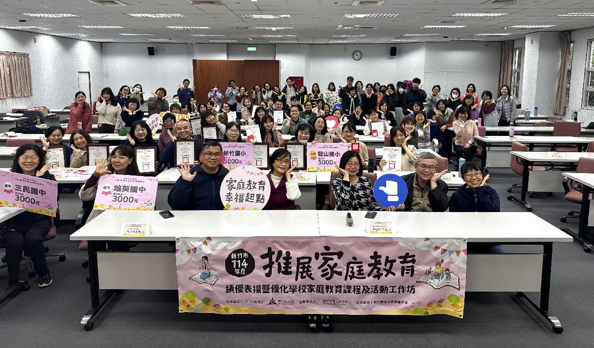新竹市政府近日舉辦114年度「推展家庭教育個人團體表揚暨績優學校推動家庭教育觀摩學習」活動,表揚 16 所在家庭教育推動上表現優異的學校、16 名績優教師及10名熱心奉獻的績優志工。教育處表示,活動中特別安排「優化學校家庭教育課程及活動工作坊」,邀請各校教師分享推動家庭教育的經驗與現況,透過彼此交流與學習,進一步強化學校與家庭的合作,共同營造更溫馨和諧的成長 環境。