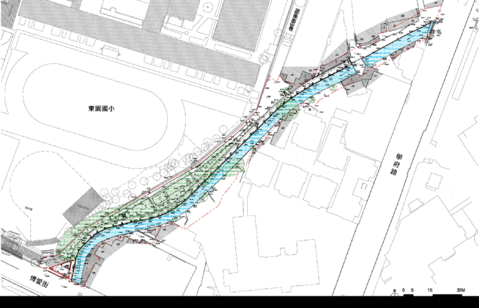 關鍵字:新竹市汀甫圳步道改善工程、東園國小段