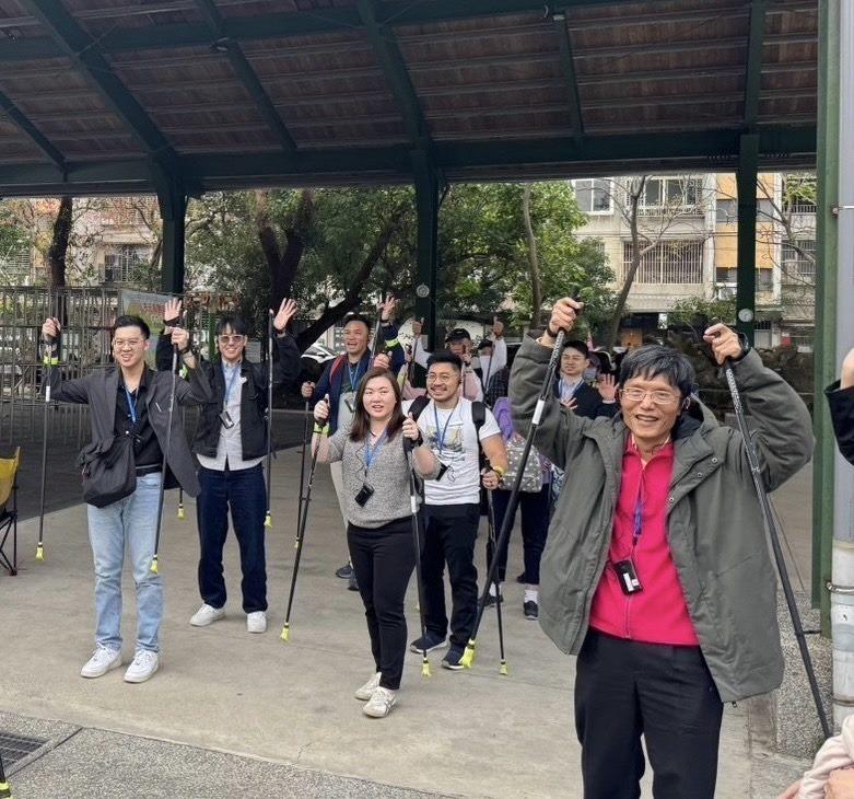 北投區健康服務中心吳俊良主任表示,北投區老年人口於114年1月底已達超高齡(22.4%),為融入在地文化特色並提升社區活躍老化,本次培訓結合「臺北市安全漫遊協會」辦理走讀志工教學體驗,當日活動共有15位長者志工共襄盛舉。活動內容結合身體運動、健走杖應用、文化古蹟與自然景觀導覽,路線安排包含復興公園之運動器材跑站健身、再以北歐健走杖步行至新北投車站懷古,沿路前往北投公園、北投圖書館綠建築導覽、北投溫泉博物館之公共溫泉浴場歷史、地熱谷手湯體驗與北投石復育保護區等上坡路段,開展北投無牆博物館漫遊之旅,最後前往「日軍衛戍醫院北投分院-向陽心苑」參訪,使志工培訓課程結合長者懷舊記憶,以北投400年豐富歷史脈絡為經緯,提升走讀體驗,再以享受足湯劃下旅程完美句點。