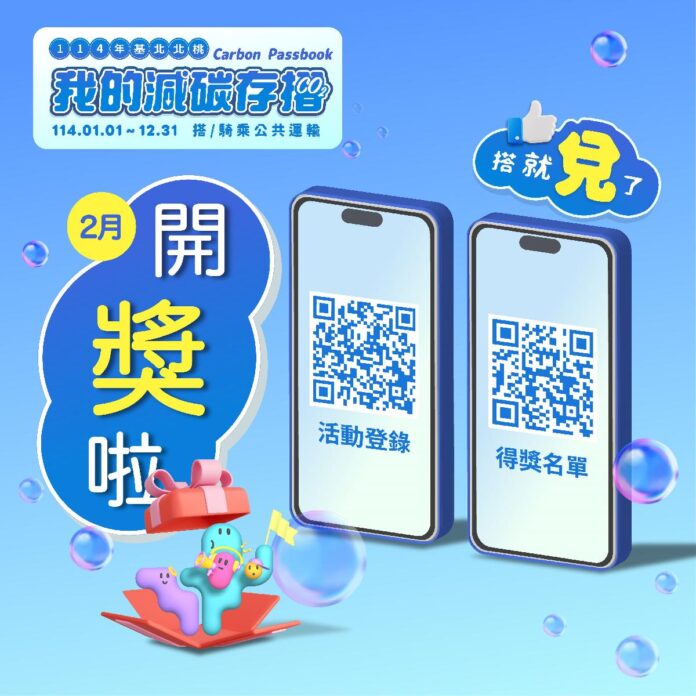 沒有得獎的民眾也別灰心,3月份的月月兌好禮活動將於4月1日開跑,提醒兌獎登記將於114年4月1日中午12時起至4月5日23時59分止在活動網站「點我兌好禮」專區,只要114年3月累計減碳量達20公斤以上,即可選擇1項獎品並填妥相關資料進行兌換登錄!有減碳、環保且實用的雙北市專用收費垃圾袋、動物園雙人套票、自來水園區門票、天文科學教育館劇場優待票、衛生紙、霜淇淋、熱美式咖啡等,本次更增加基隆市伴手禮大禮包及萊爾富美式咖啡等超值產品可供民眾選擇!搭(騎)乘公共運輸除了減碳,還能節省生活用品開銷,這麼好康的活動千萬不能錯過!趕快筆記下時間,準時到活動網站登錄兌換!