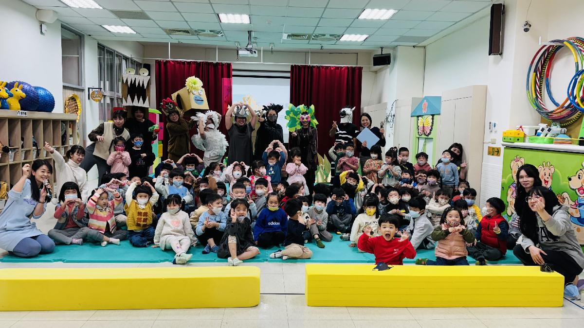 園內老師編擬劇本,家長們化身道具設計師和演員,不僅親手運用生活中的回收材料及物品等製作舞台上的精美道具,更以生動的表演為孩子們帶來戲劇的魅力。從角色的服裝及道具、裝飾到舞台布景,每一件道具都凝聚了家長們的心血與創意。