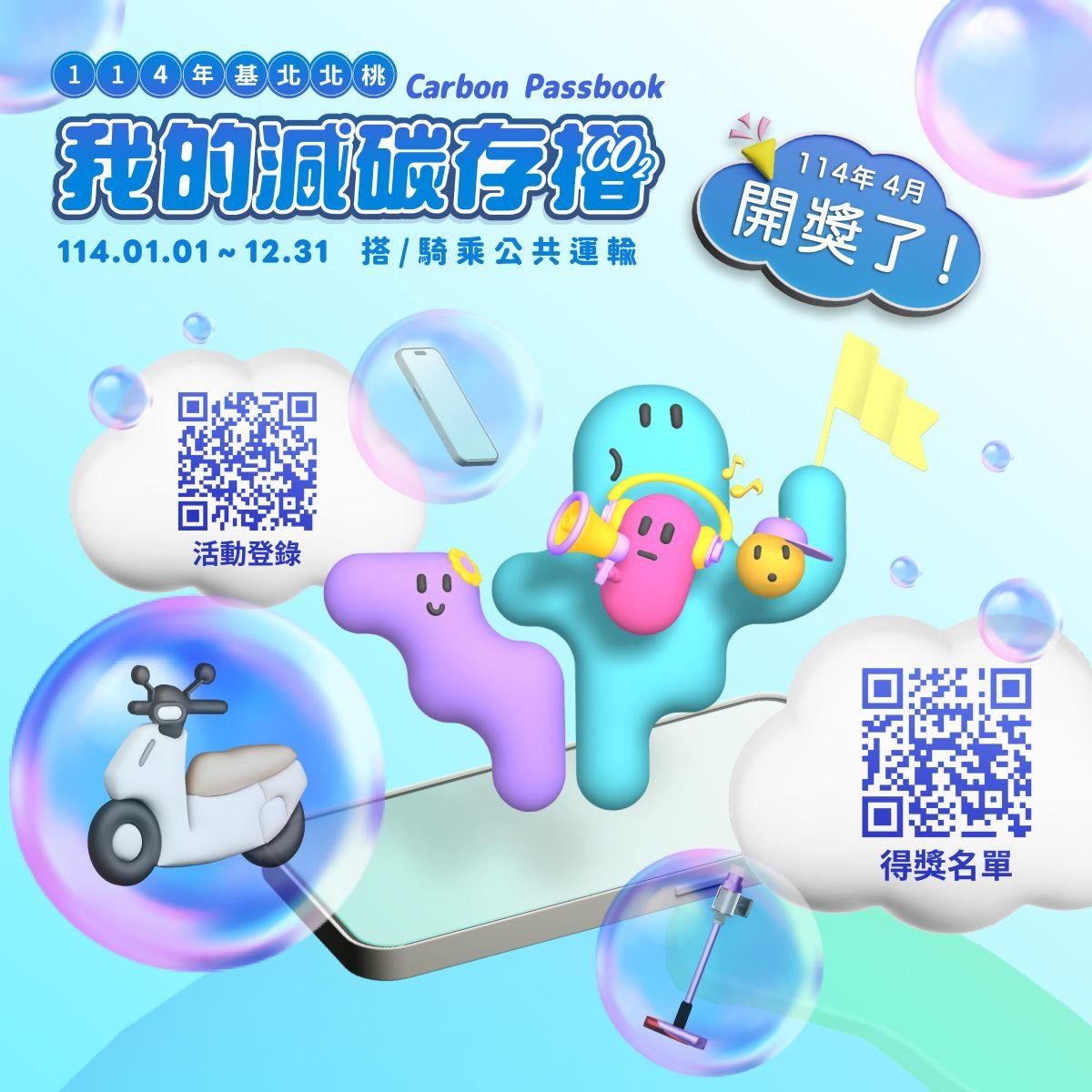 基北北桃「我的減碳存摺」全民運動114年4月份「月月抽」及「月月兌」得獎名單於今(26)日公布!恭喜各位得獎者,得獎名單請詳活動網站(https://co2-passbook.com/ )。幸運中獎的得獎者,悠遊卡公司將於5月31日前以簡訊通知;月月兌部分獎項 (如:專用垃圾袋、美式咖啡、霜淇淋等)將以悠遊付APP訊息推播方式通知領取,請得獎者留意手機APP推播訊息;其餘獎項將依序通知及進行寄送作業,也請耐心等候!貼心提醒3月份成功兌換到「月月兌」好禮悠遊付APP電子優惠券的民眾,依照兌換說明於期限內至指定地點前往領取獎項,不要錯過領取獎品的機會囉!