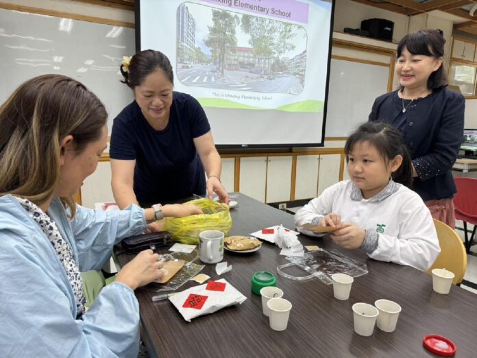 本次活動由洪紫馨、劉承叡、黃柏澄、闕佑丞等4名學生擔任外交小尖兵,以雙語展現萬興國小深耕國際教育的成果。參訪內容從茶文化到雙語情境智慧校園的體驗,是學校推動素養導向雙語教育的多元實踐。首先,播放雙語校園影片,介紹學校課程與教學理念,呈現萬興國小校園特色與在地文化,Dr. Hsieh表示:「影片中的每一幕都反映出學校對教育的真誠與用心。」接著,由陳品霓、彭于芯及鐘宥棋等3名學生以萬興國小校園特色、社團活動與文山區在地美食等主題,進行英語簡報。學生表現自信且落落大方,Dr. Hsieh特別讚賞小朋友:「語言表達與國際素養,是未來世界公民的重要基礎。」此外,本校安排茶文化體驗活動,Dr. Hsieh與學生體驗製作具有臺灣特色的茶包禮物,並用毛筆在宣紙上寫上「吉」的中文字。Dr. Hsieh在活動中不僅品味在地茶文化,認識鐵觀音及包種茶,也感受到學生們透過實作傳遞出的細膩情感。