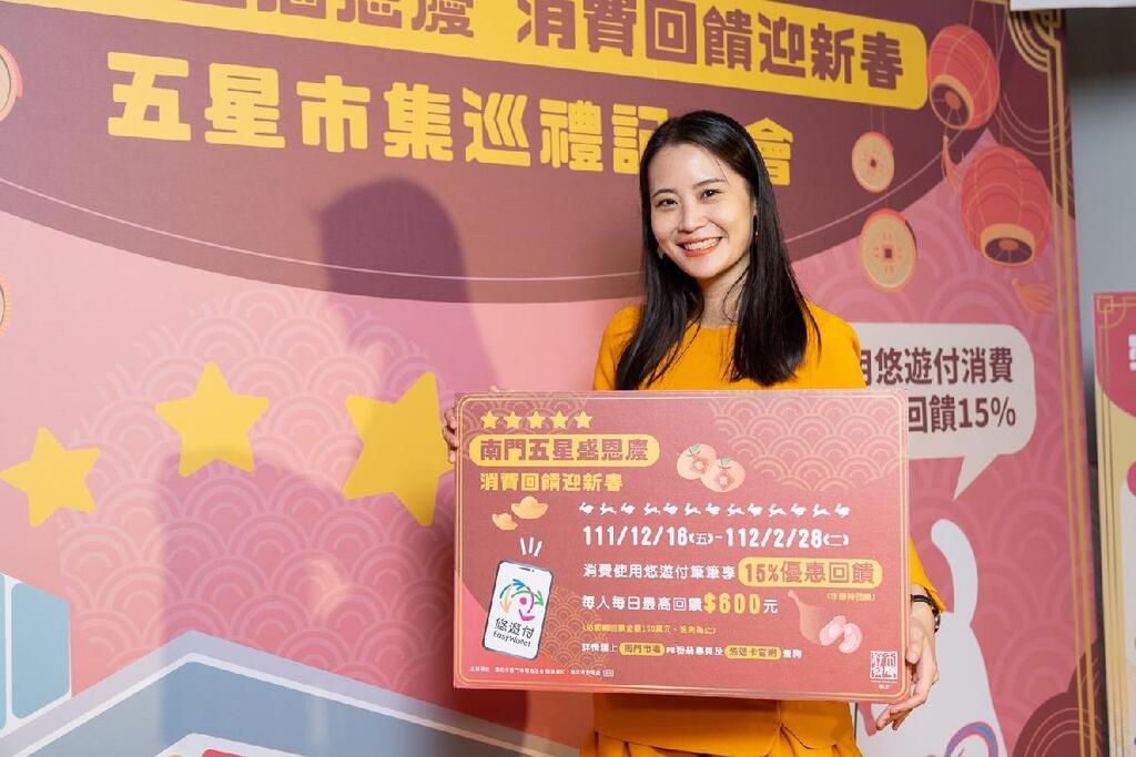 本次「南門五星感恩慶」五星市集回饋活動將發出150萬元回饋金,即日起至2月28日止,民眾來南門市場消費不限金額,使用悠遊付結帳就回饋15%回饋金,每人每日累積最高回饋上限600元,隔日重新再計算,回饋金將於活動結束後一個月內全額回饋到民眾的悠遊付電子支付錢包裡,數量有限,發完為止,民眾可把握機會,在活動期間內來南門市場消費享回饋。