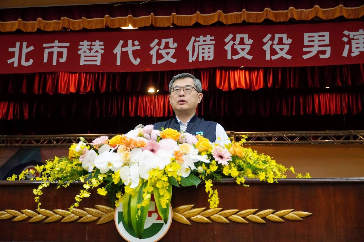 內政部役政司陳副司長致詞時表示,替代役制度於89年施行以來,累計到現在已有25萬1,000名備役役男列管,平時參與演訓,非常時期則可根據需求被召集服勤。隨著國際局勢的變化,政府也在111年將替代役人力正式納入民防體系,以便在國家需要時,迅速支援災害搶救與緊急救援工作,確保社會穩定運作。他也感謝臺北市政府積極配合中央政策,透過完善的課程安排提升役男救護技能,共同為守護家園、捍衛民主貢獻心力。
