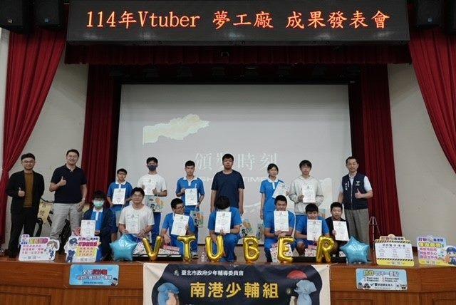 本會南港少輔組在6月20日(星期五),於南港警察分局舉辦Vtube成果發表會,現場宛如數位宣導嘉年華會,少年透過自創的虛擬偶像傳達宣導主題詐騙的故事,讓受眾可在輕鬆氛圍中學習反詐騙、反毒、人際衝突等法律知識。活動氣氛最高潮是屬優秀作品2件獲頒變速自行車獎品,參與學生分享學習過程中學會了AI腳本創作、服裝設計、配音與影片剪輯,讓參與的每位學生收穫滿滿且自豪的展現完成的Vtube。