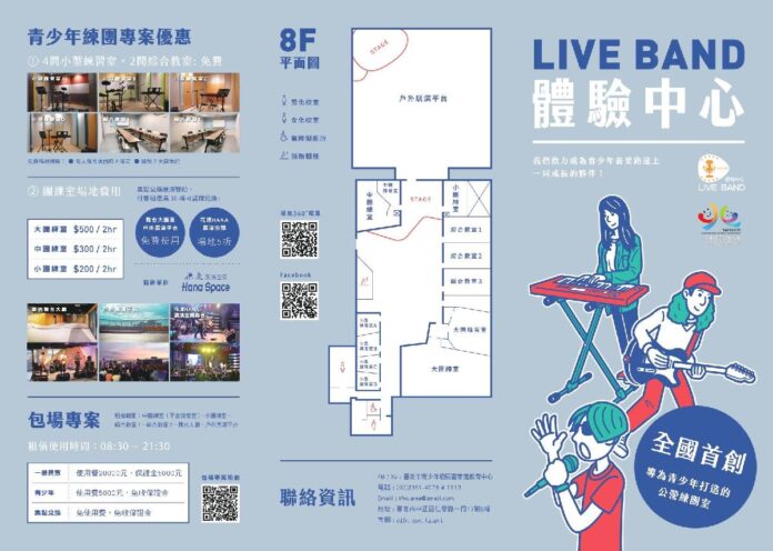 另外,為鼓勵青少年發展各項練團技能並激發創作才能,只要同行者出具青發家教中心核發的錄音研習認證卡,租借大、中團練室時,即可免費使用附設的錄音空間與設備,錄製專屬音樂作品,實踐自己的音樂夢。